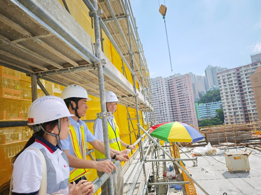 ▲李水江調(diào)研觀塘項(xiàng)目MiC模塊安裝
